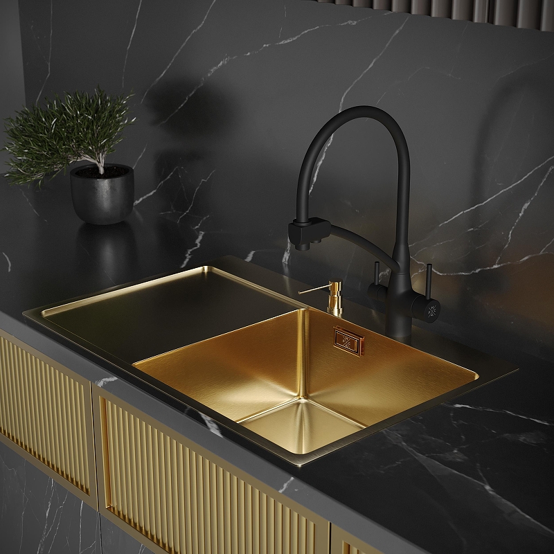 • Кухонная мойка Ростовская Мануфактура Сантехники MRK 78 R MRK-7851G R цвет Золотой